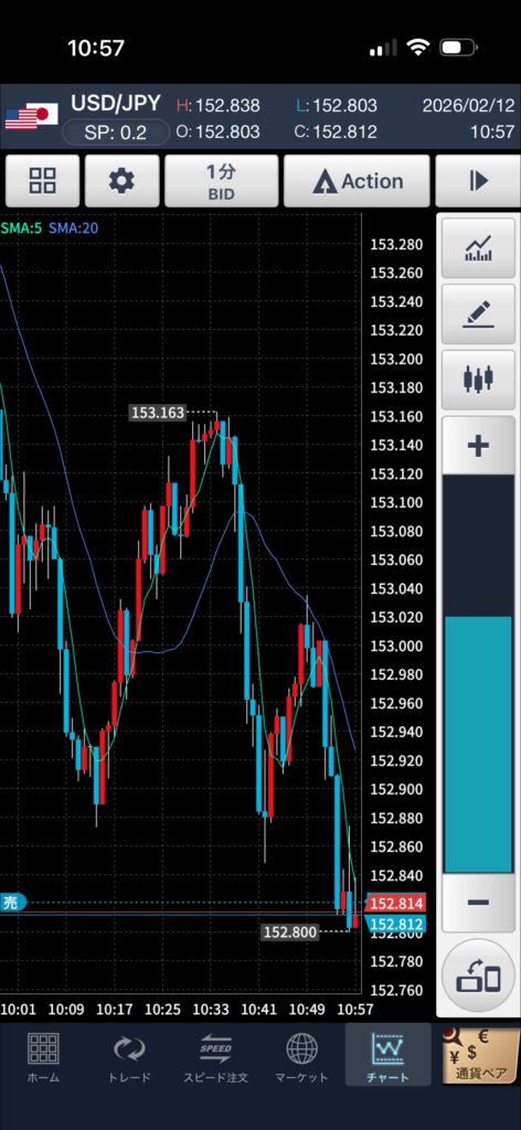 1分足で戻りの弱さを確認し、