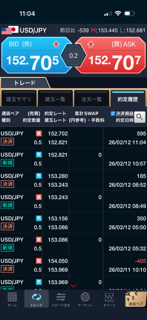 ・節目(152.800)を意識できた