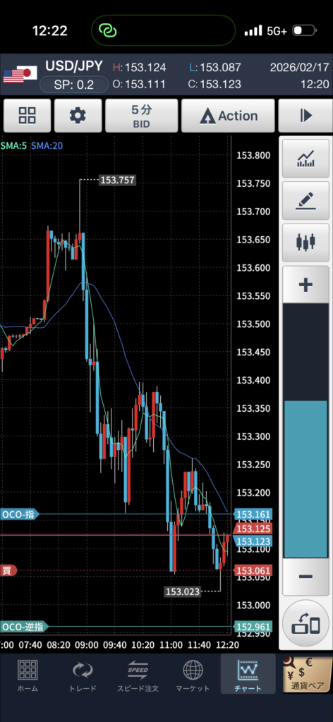 153.000付近にサポートがあると判断し、反発を想定。