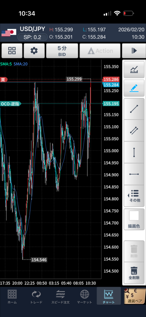 155.195で損切り。