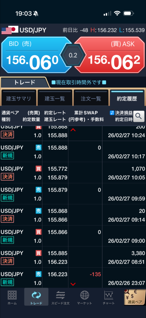 155円後半〜156円前半のレンジ相場。