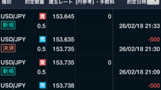 トレード記録 2026.02.18 USD/JPY +500円