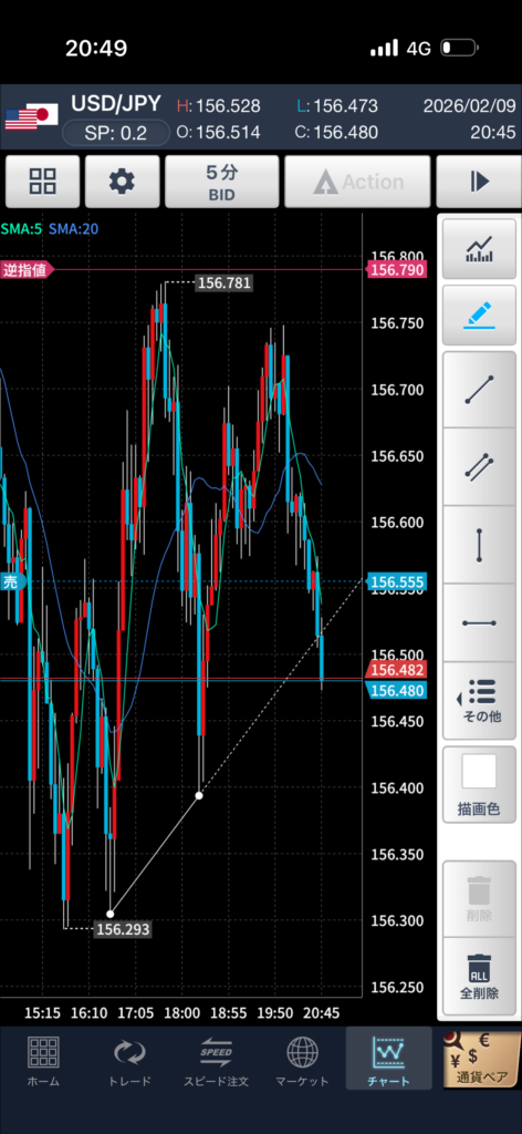 156.30付近からの反発 → 戻り局面を想定。